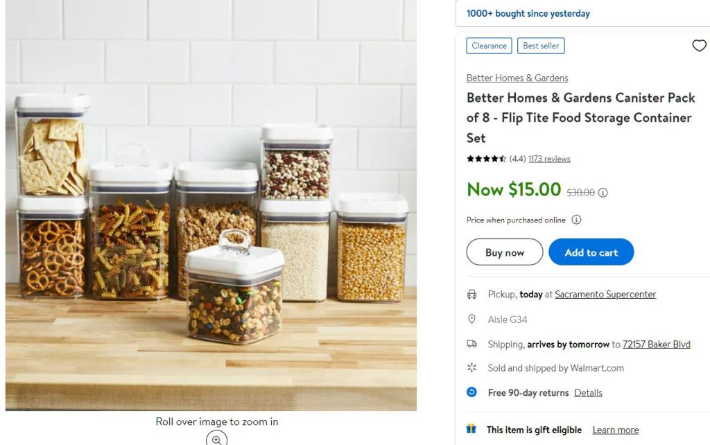 KitchenWalmart 🔥 HOT! Better Homes & Gardens Canister Pack of 8 – Flip Tite Food Storage Container Set only $15 3Goats January 10, 2023 0 $15.00 $45.00 Buy It Now Amazing clearance price!! This set was $30 on Black Friday Lots Click Here: For many more great Walmart Rollback sale items  Share this: Share on WhatsApp (Opens in new window) WhatsApp Email a link to a friend (Opens in new window) Email Share on Facebook (Opens in new window) Facebook Share on Telegram (Opens in new window) Telegram Share on Pinterest (Opens in new window) Pinterest More Share on LinkedIn (Opens in new window) LinkedIn Share on Reddit (Opens in new window) Reddit Share on X (Opens in new window) X KnifeSaga Premium Knife Set 15 Pcs Quality Kitchen Knife Set with BlockAstercook Knife Set, Kitchen Knife Set with Block and SharpenerJEETEE Pots and Pan Set Non Stick 19 Pcs 🔥 You Might Also Like Best Amazon Kitchen Deals — Updated April 25, 2026 Genius Amazon Gadgets Every Home Cook Needs (All Under $20) $0.00 $0.00 42 Monday Deals — Up to 84% Off Monday’s Hottest Amazon Deals Are Already Selling Out $0.00 $0.00 Kitchen & Cooking Must-Haves 54 Deals — Up to 81% Off $0.00 $0.00