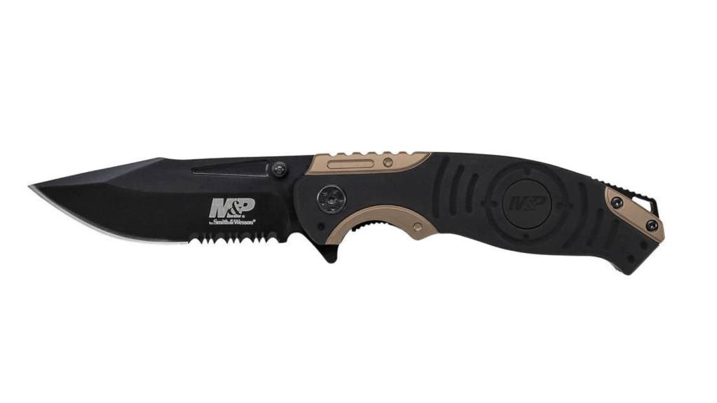 - DURABLE: Blade is made of reliable 8Cr13MoV Black Oxide High Carbon Stainless Steel with a black and tan, aluminum handle