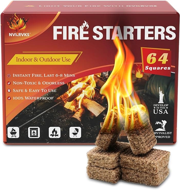 Light your new fire pit with these awesome fire starters. A pack of 64, they give you instant fire that is also waterproof. Get up to 8 minutes of steady, warm flames that can withstand harsh weather conditions. They’re also scent free, so not harsh chemicals!