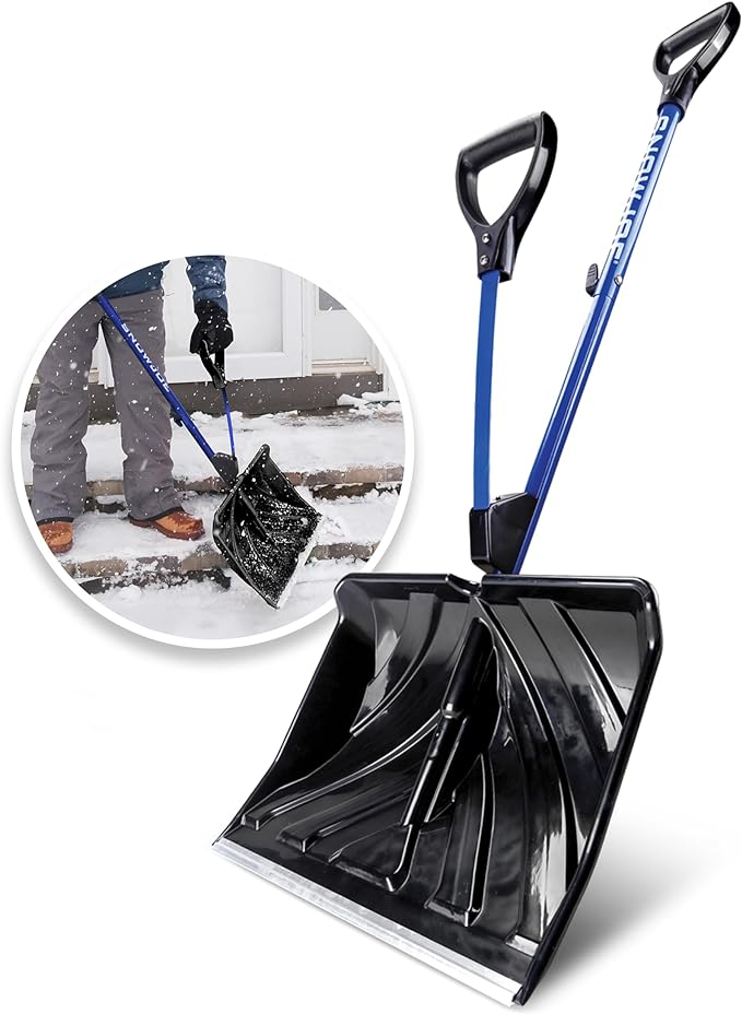 Having a snow shovel on your side for the winter season is definitely a bonus. This one is ready for the challenge! Snow Joe’s snow shovel is made with durable materials, and a second handle which helps with control, and it’s easy on your back.