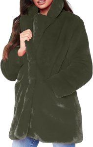 Fashion Winter Faux Fur Coats Furry Women Soft Warm Fuzzy Jackets Olive XL