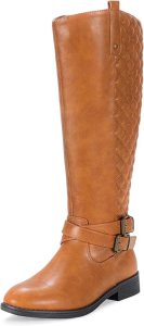 Women’s 49 Knee High Tall Riding Boots with Low Heel+Buckle Calf Boot