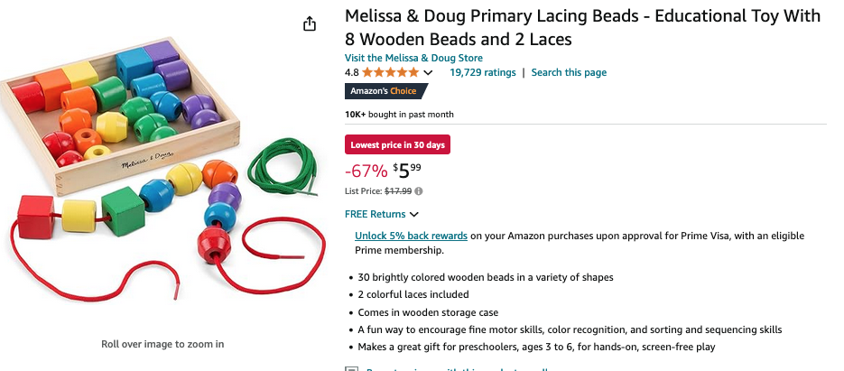 67% off Melissa & Doug primary lacing beads