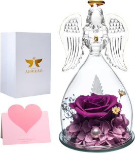 Preserved Real Rose in Glass Angel Figurines Preserved Flowers