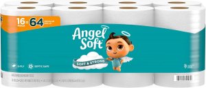 Angel Soft Toilet Paper, 16 Mega Rolls = 64 Regular Rolls, Soft and Strong Toilet Tissue