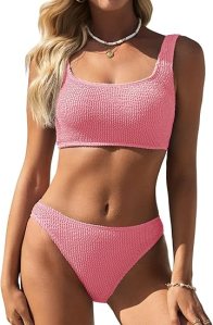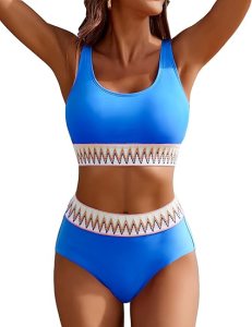 The high-waisted bottom helps with tummy control, accentuating your silhouette, while the scoop-neck top with adjustable straps offers just the right coverage. It’s perfect for a day at the pool, a beach vacation, or even a surfing adventure!