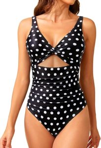 A one-piece that isn’t afraid to make a fashion statement. It has a classic modern cut and a vintage design that’ll definitely compliment your beachy look. The top has sewn-in padding, great for a good boost of support for the girls and your comfort.