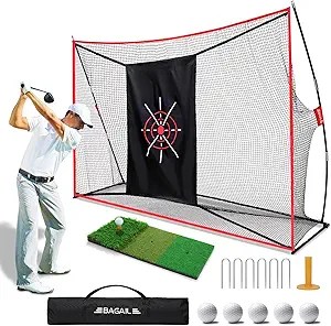 BAGAIL Golf Net 10×7 ft with Tri-Turf Mat & Carry Bag – Golf Training Aid for Backyard or Indoor