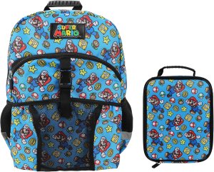 Super Mario Brothers 2-Piece 16″ Premium Backpack & Lunch Kit Set for Boys