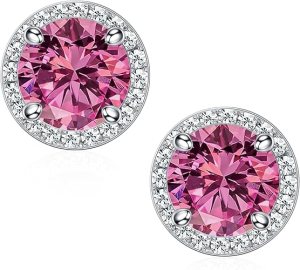 SMILEST 925 Sterling Silver Birthstone Halo Earrings