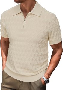 Arach&Cloz Mens Zipper Polo 3D Texture Knit Golf Shirt