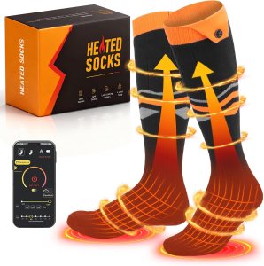 Soft, washable heated socks that keep feet warm and comfortable during winter walks or cozy evenings.