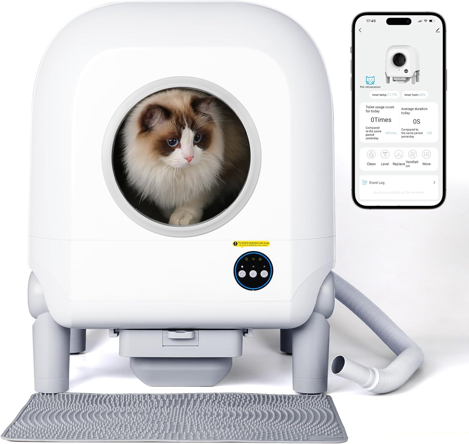 Enjoy a cleaner environment with an Automatic cat litter box that does the scooping for you. This box automatically replaces soiled litter, thanks to its new manual control panel, with a massive 100L capacity ensuring less frequent refills. Packed with security features like a hatch detector and gravity sensors, peace of mind and safety for your feline friends is assured.