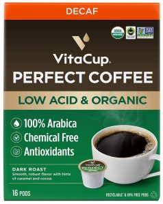 VitaCup Organic Perfect Dark Roast Decaf Coffee Pod for Pure & Clean Energy