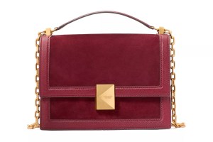 If you want to add a pop of color to any outfit, carry this red purse that’s made of suede and pebbled leather. It has gold-toned accents, including the brand’s “K” hardware and a chain. You can use the chain as a crossbody strap or wrap it around the bag twice to carry it on your shoulder. The inside has a main pocket, a zippered pocket, and a slip pocket to organize your essentials.