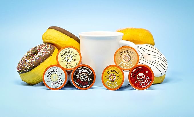 8 of your favorite classic donut flavors are now available in convenient single serve coffee pods. You’ll be brewing’ them up by the baker’s dozen! Our quality Arabica beans are expertly flavored to give you a satisfying cup of yummy donut flavored coffee every time you brew.