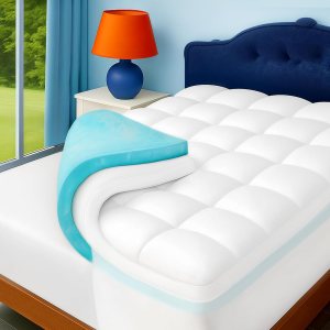 Editor’s Pick: This Amazon memory foam mattress topper combines cooling gel and plush padding to help ease back discomfort and improve sleep quality.