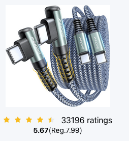 29% off AINOPE 60W 2Pack Right Angle Usb C To Usb C Cable