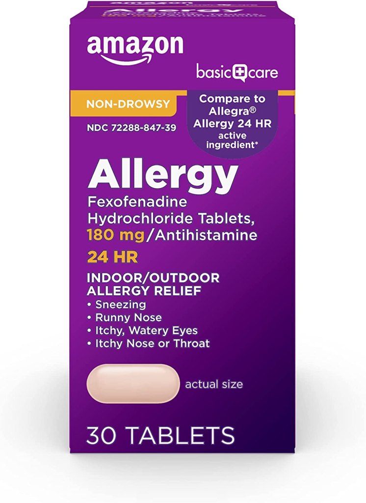 - CTIVE INGREDIENT: This allergy medicine contains fexofenadine hydrochloride 180 mg, a non-drowsy antihistamine; compare to the active ingredient in Allegra Allergy 24 HR