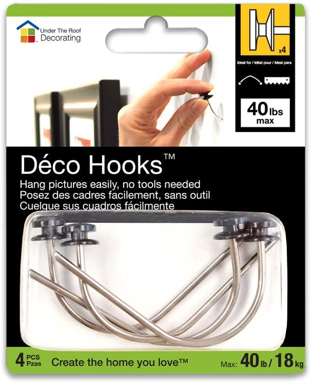 DecoHooks make it easy to hang your wall decor items in drywall, without any tools. The hooks are designed to twist into drywall, and then push the head of the hook until it sits flush with the wall. The rear tip of the hook will engage into the back of the drywall, which gives the hook it’s superior holding strength.