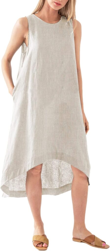 This linen swing dress looks fantastic on anyone and is just what you need for embracing the beach weather no matter the season. If you want something that’s easy to style, you’ve got to have this dress on your side.