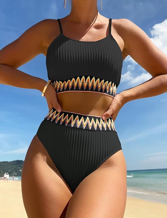 A high waisted 2-piece that’s ready to land in your cart and make you the talk of the beach. It has a ribbed pattern, then perfectly crafted with a “zig-zag” hem. The perfect fit, it perfectly contours your curves for a flattering fit that’ll keep up with all of your water-filled adventures.
