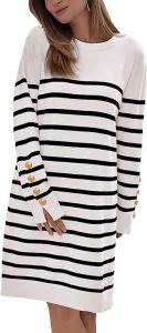 9. Comfy cozy: See why we’re in love with this striped sweater dress to check it out on Amazon. It’s all in the details. Sleeve buttons are totally demure — just $ 30 to check it out on Amazon!