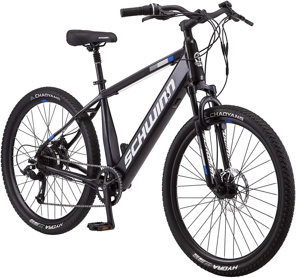 - Ebike with aluminum dual sport frame; great for neighborhood rides and bike trails. 27.5-inch wheels fit riders 64 to 74 inches tall