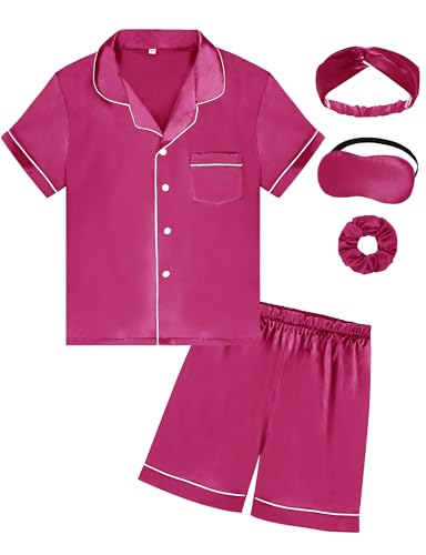 Ekouaer Satin Pajama for Women Short Sleeve Silky Pj Short Set Bow Front Tie Up
