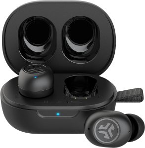 Next, we have earbuds by JLab. These compact earbuds are perfect for people with smaller ears and were rated highly in the BestReviews Testing Lab, earning the title of a hidden gem. With 20 hours of charge time and a price point well under $100, they offer excellent value.