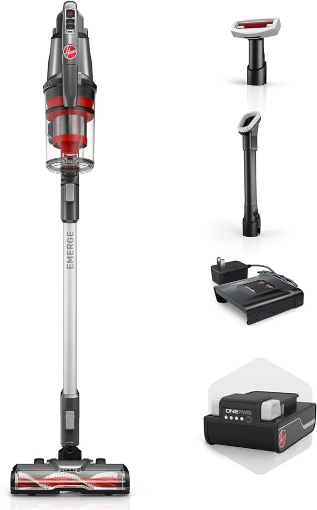 Hoover’s cordless vacuum delivers on cleaning performance, minus the loud noise and bulky weight. It’s rechargeable and comes with a compact, quick-charging charger. The set comes with multiple attachments for a variety of cleaning needs.