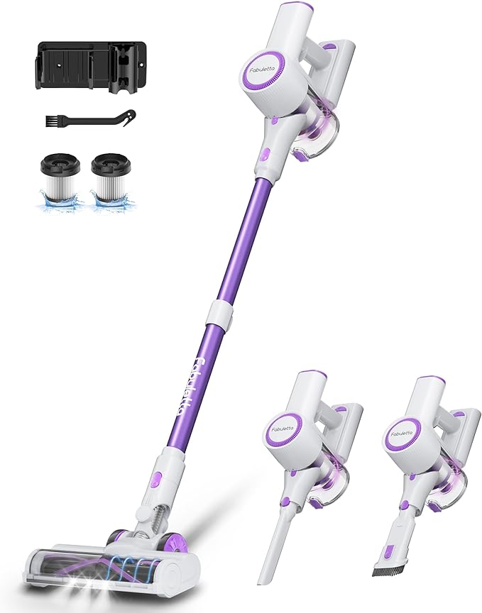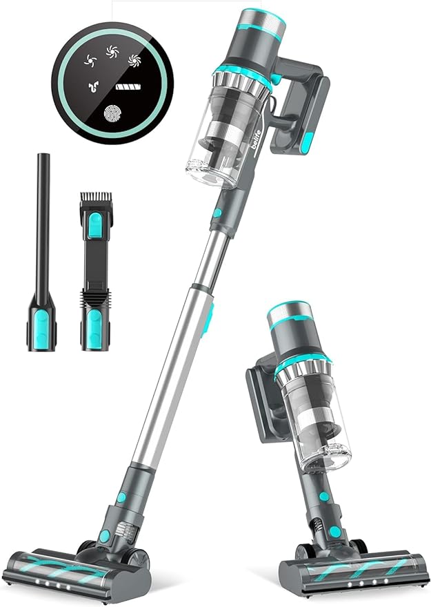 This cordless vacuum has a powerful suction that works on your carpets and hard flooring. It’s ultra-lightweight, making it easy to clean with. It comes with an LED screen that lets you control the speed you need and displays your battery percentage.