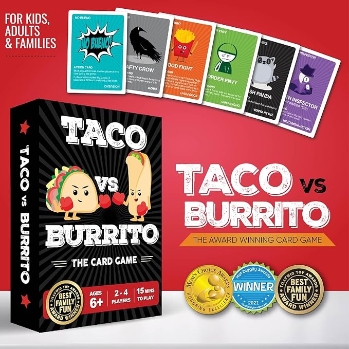 - Perfect Gift for All Occasions: Looking for a birthday gift for a 7-year-old boy, a Christmas present for a 9-year-old girl, or a unique stocking stuffer? Taco vs Burrito fits all these needs, making it a hit for every occasion.