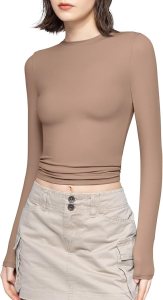 Anranbess Women Double Lined Long Sleeve Crop Tops
