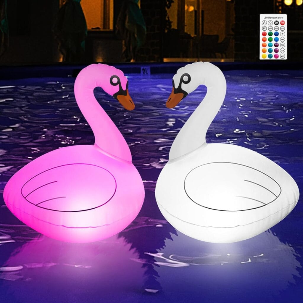 Make your pool party shimmer with the stunning swan solar pool light. These eco-friendly illuminations offer 16 RGB colors, sure to perfectly set your evening ambiance. They’re solar-powered for an impressive 6-8 hours of glow time. Blending undeniable durability with premium PVC material, they’re also weather-proof.