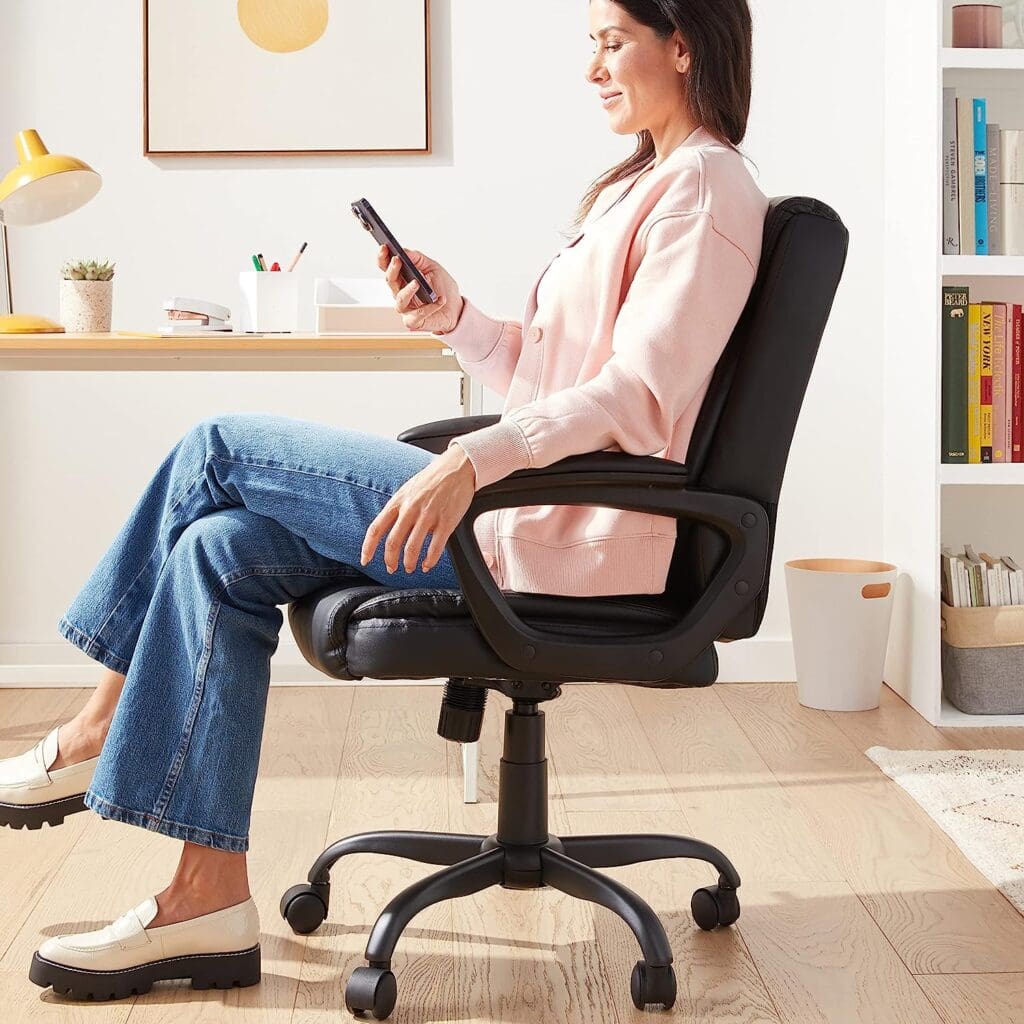 Just because you have to be stuck at your desk all day, doesn’t mean you shouldn’t be comfortable. The Amazon Basics Classic Puresoft Desk Chair features a comfortable and adjustable design suitable for home offices, workstations, or conference rooms. It has adjustable seat height, angle, tilt control, and includes a contoured padded seat, backrest, and armrests.