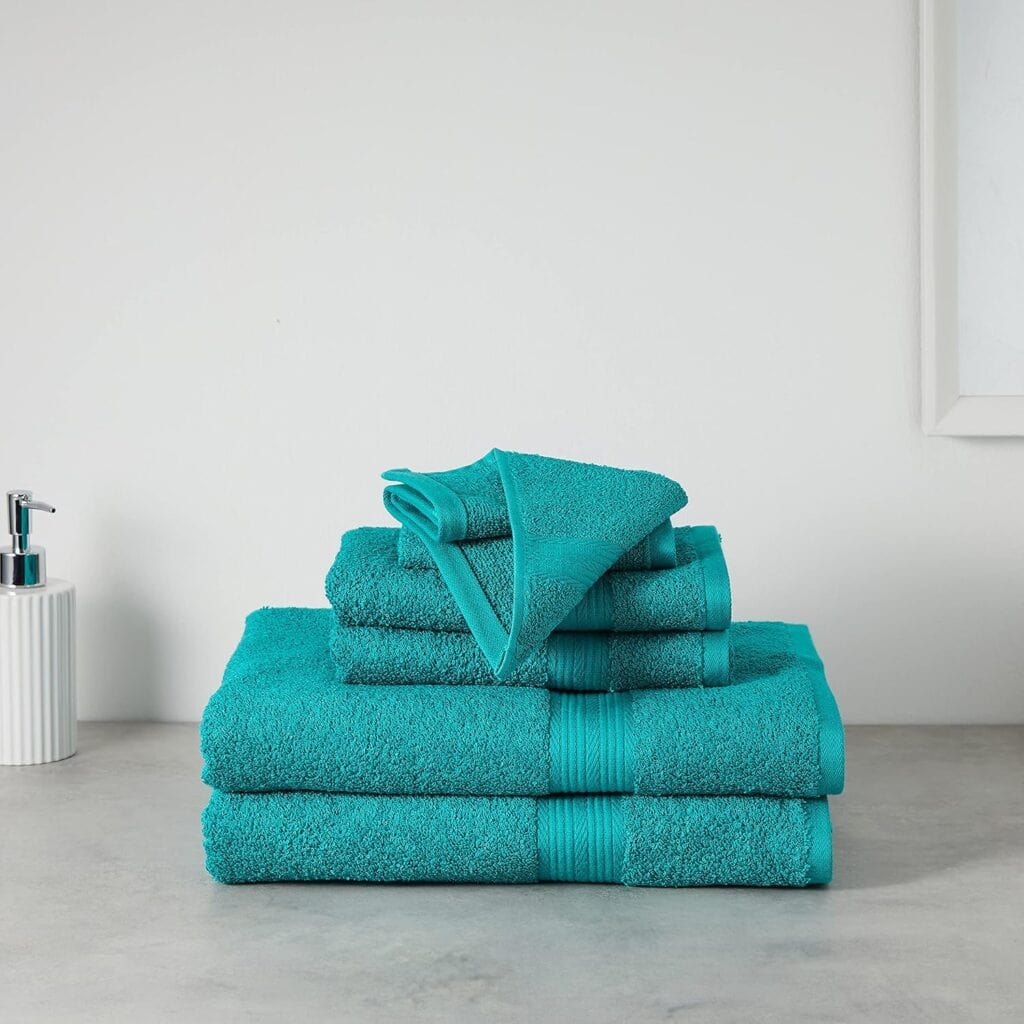 Elevate your bath experience with this premium cotton towel set from Amazon Basics, designed for ultimate comfort and durability. Each set includes two generously sized bath towels, two hand towels, and two washcloths, providing everything you need for a complete bathroom refresh. Crafted from soft, absorbent cotton, these towels are designed to maintain their quality wash after wash.