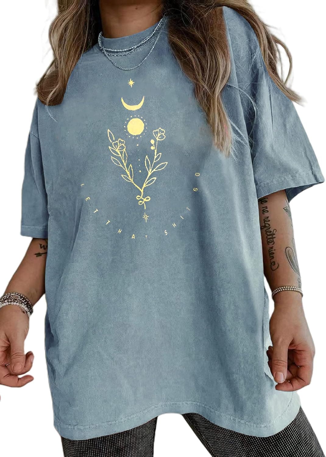 The Remidoo Women’s Casual Oversized T-Shirt, in serene powder blue with leaves and the moon, casually advises to “Let that $h!t go.” It’s for those days when you’re over it but in a cosmic, leafy sort of way. Wear it and become a zen master with a sense of humor.