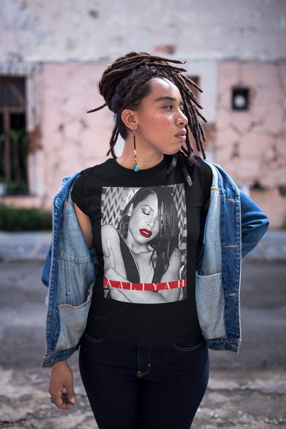The Ripple Junction Aaliyah Red Lips Crew T-Shirt is your wardrobe’s nod to the 90s, where the tunes were smooth, and the fashion, smoother. It’s for those who appreciate a classic beat and believe that a little lip-syncing with Aaliyah’s red lips can make any day better. Rock the boat, fashionably.