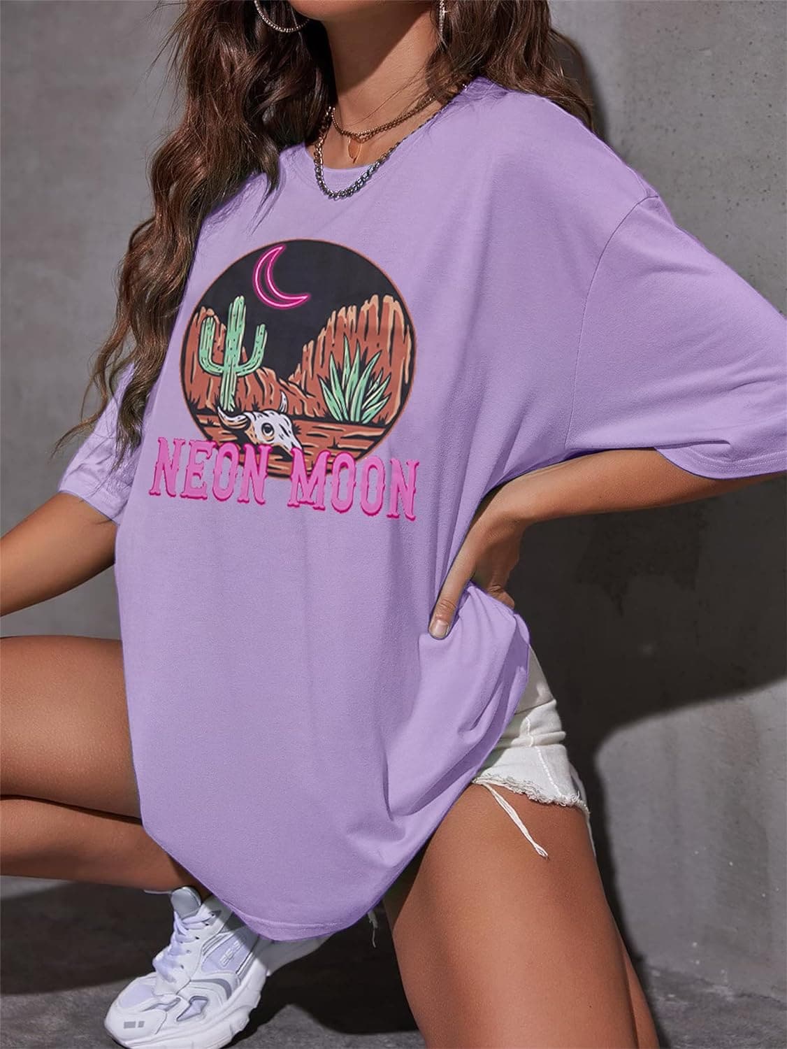 Slip into the Women’s Oversized Neon Moon T-Shirt and channel your inner cowgirl, electrified by neon and nostalgia. Perfect for those who yeehaw at heart, but glow like a honky-tonk sign in the urban jungle. Saddle up for style, partner.