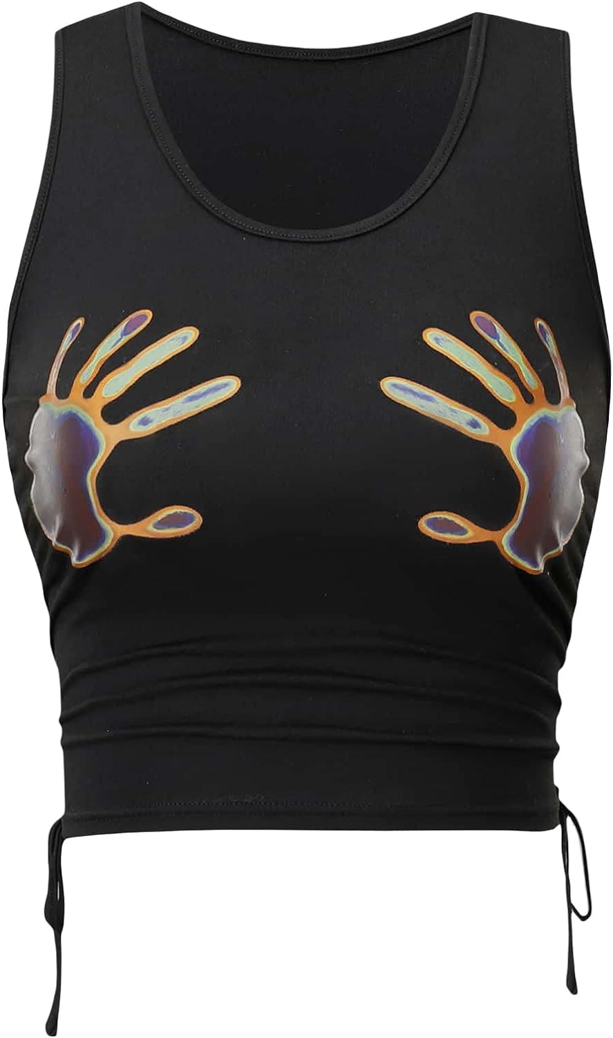 The Floerns Women’s Ruched Crop Tank Top, with its clever hand graphic print guarding the chest, serves up a visual pun that’s both bold and playful. Ideal for the fashion-forward who like their style with a side of wit, and who believe in making a statement without saying anything at all.